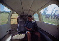早朝のサリマ空港には、チャーター機が南のブランタイヤ空港から来てすでに草原の滑走路に待機していた。6人乗りの新品ぴかぴかのビーチ・クラフト新鋭機だ。パイロットは白人の青年で、「私はモスリーと言いますが、誰も私の名前をそう呼んではくれません。モスキート(蚊)と呼ばれています。パイロットという職業のせいでしょうか」と屈託のない笑みをたたえて自己紹介する。爽やかで好感の持てる青年である。同行するのは、グラント夫人、彼女の弟のジョンとその妹、サウロス、それに私たち2名の計6名だ。